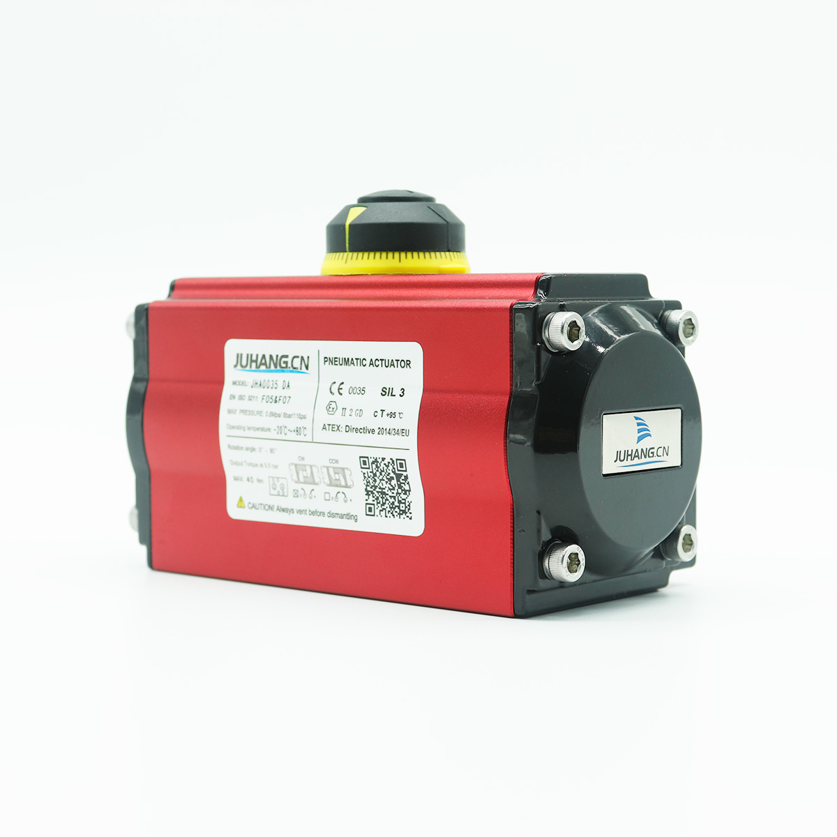 रैक और पिनियन वायवीय एक्ट्यूएटर डबल एक्टिंग JHA0035DA, उच्च गुणवत्ता, कम घर्षण, लंबा जीवन, स्विचिंग समय 1 मिलियन से अधिक बार, उच्च स्थिरता से अधिक है।