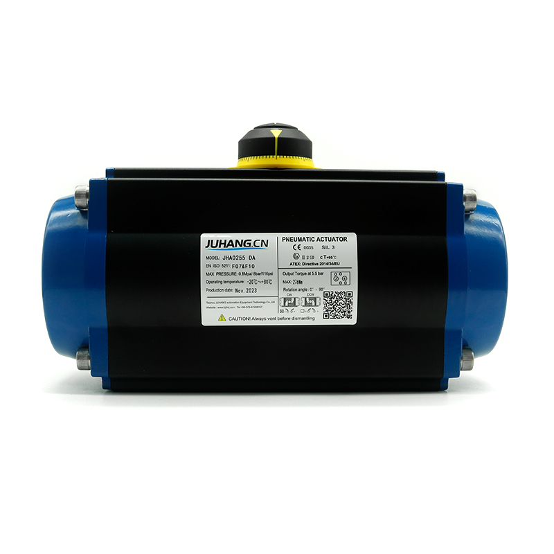 रैक और पिनियन वायवीय एक्ट्यूएटर डबल एक्टिंग JHA0255DA, उच्च गुणवत्ता, कम घर्षण, लंबा जीवन, स्विचिंग समय 1 मिलियन से अधिक बार, उच्च स्थिरता तक है।